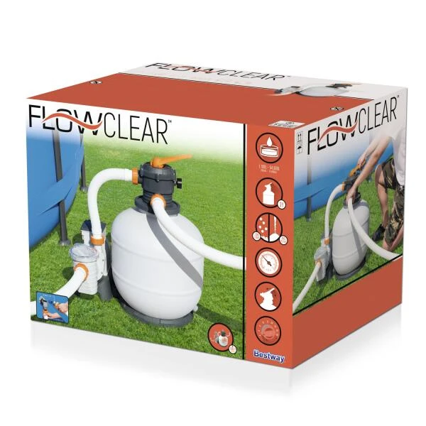 Houd het zwembadwater proper met deze zandfilterpomp zodat je niet elke 2 weken een filtercartridge hoeft te vervangen.