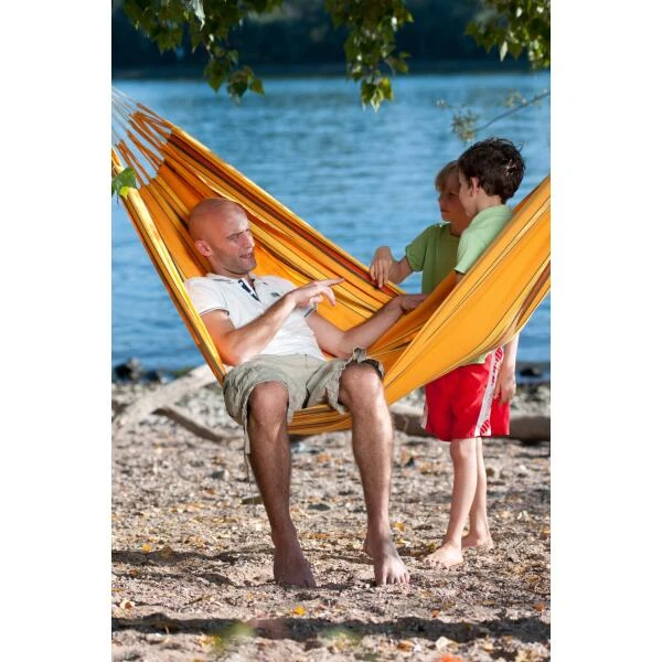 De Currambera hangmat van La Siesta is een klassieke tweepersoonshangmat uit hoogwaardig katoen. De stof heeft stralende kleuren en is extra zacht. Het biedt een knusse plek om in de tuin of op reis heerlijk met zijn tweeƫn te vertoeven. Het fleurige feelgoodstatement voor groot en klein!