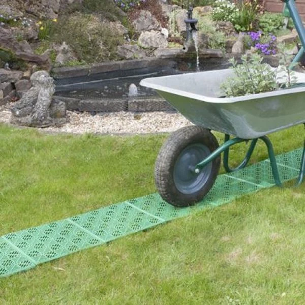 Met deze kunststof tegels maak je in een handomdraai een pad in de moestuin, een terras of een anti-slip mat bij het zwembad en dit in de vorm en grootte die je zelf wenst. Elke tegel kan afzonderlijk gebruikt worden maar je kan de tegels ook aan elkaar klikken zodat ze één geheel vormen. Elke tegel heeft op de vier zijden een kliksysteem.